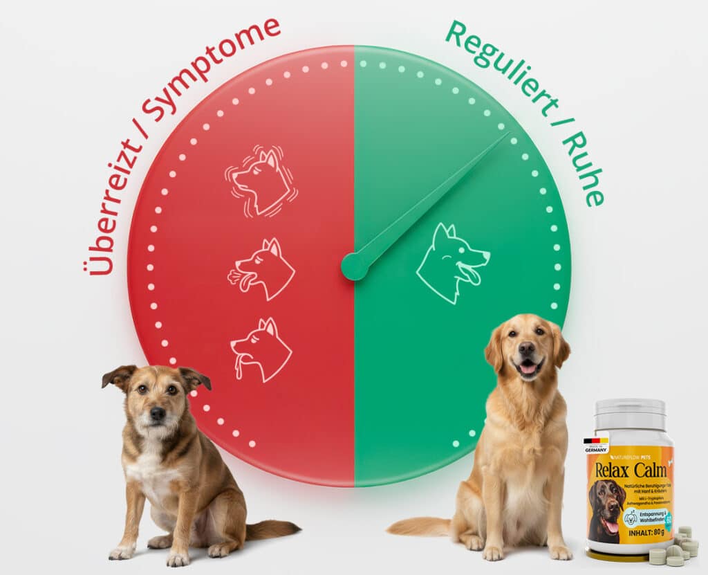 Relax‑Calm ist eine natürliche Basismodulation und ersetzt keine individuelle Diagnostik. Bei bestehenden Erkrankungen, Trächtigkeit/Laktation oder paralleler Medikation Rücksprache mit Ihrer Tierärztin/Ihrem Tierarzt halten.