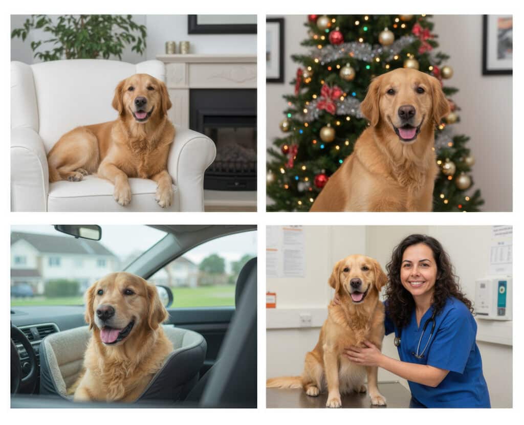Hunde, die bei Feuerwerk/Gewitter, Alleinbleiben, Auto/Travel, Tierarzt/Grooming oder hoher Reizdichte mit Zittern, Hecheln, Speicheln/Übelkeit, Pacing/Erstarren, Vermeidung, Futter‑/Wasserstopp und gestörtem Schlaf reagieren.